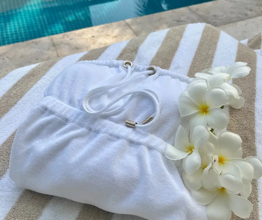 Every part of our production, packaging, and distribution is designed with sustainability in mind. Our timeless designs avoid fleeting trends, and the high-quality towelling fabric is made to last. Even after its days as a dress are done, we’re pretty sure the cat would still want it as a blanket.